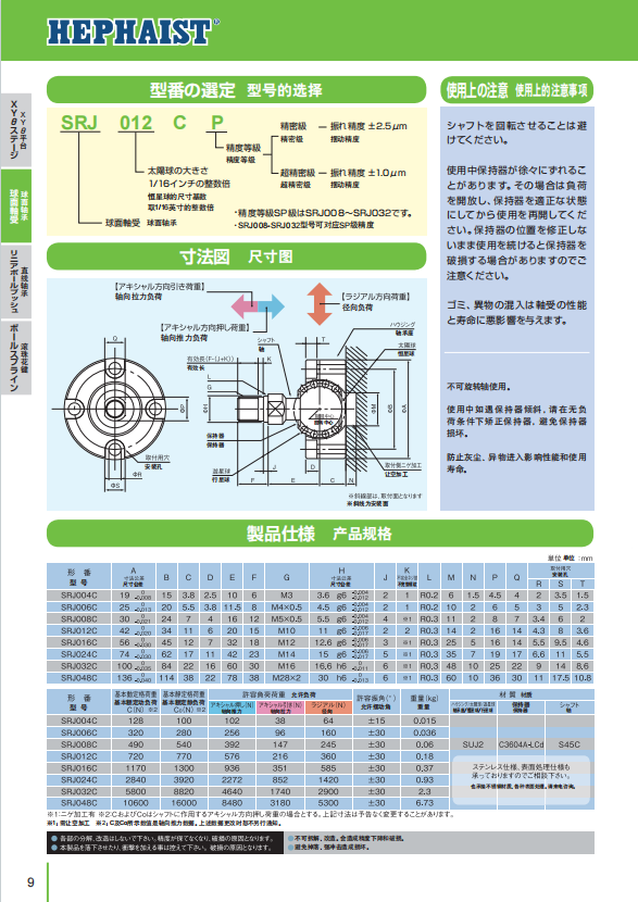 Hephaist萬向球鉸, SRJ012CP